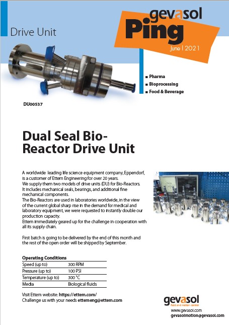 We supply them two models of drive units (DU) for Bio-Reactors.