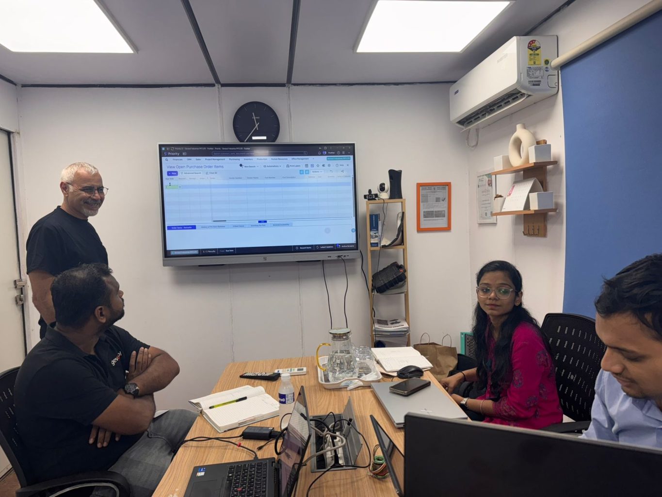 Samen met Ori Ronen, hoofd van onze activiteiten in India, bracht ik een betekenisvolle week door met de managers en medewerkers op de site. We introduceerden digitale productie-rapportages via tablets, voerden slimme barcodelabels in, bouwden een capaciteitsgebonden werkplan en begonnen met het standaardiseren van processen — allemaal gericht op groei, met behoud van efficiëntie, transparantie en consistentie.